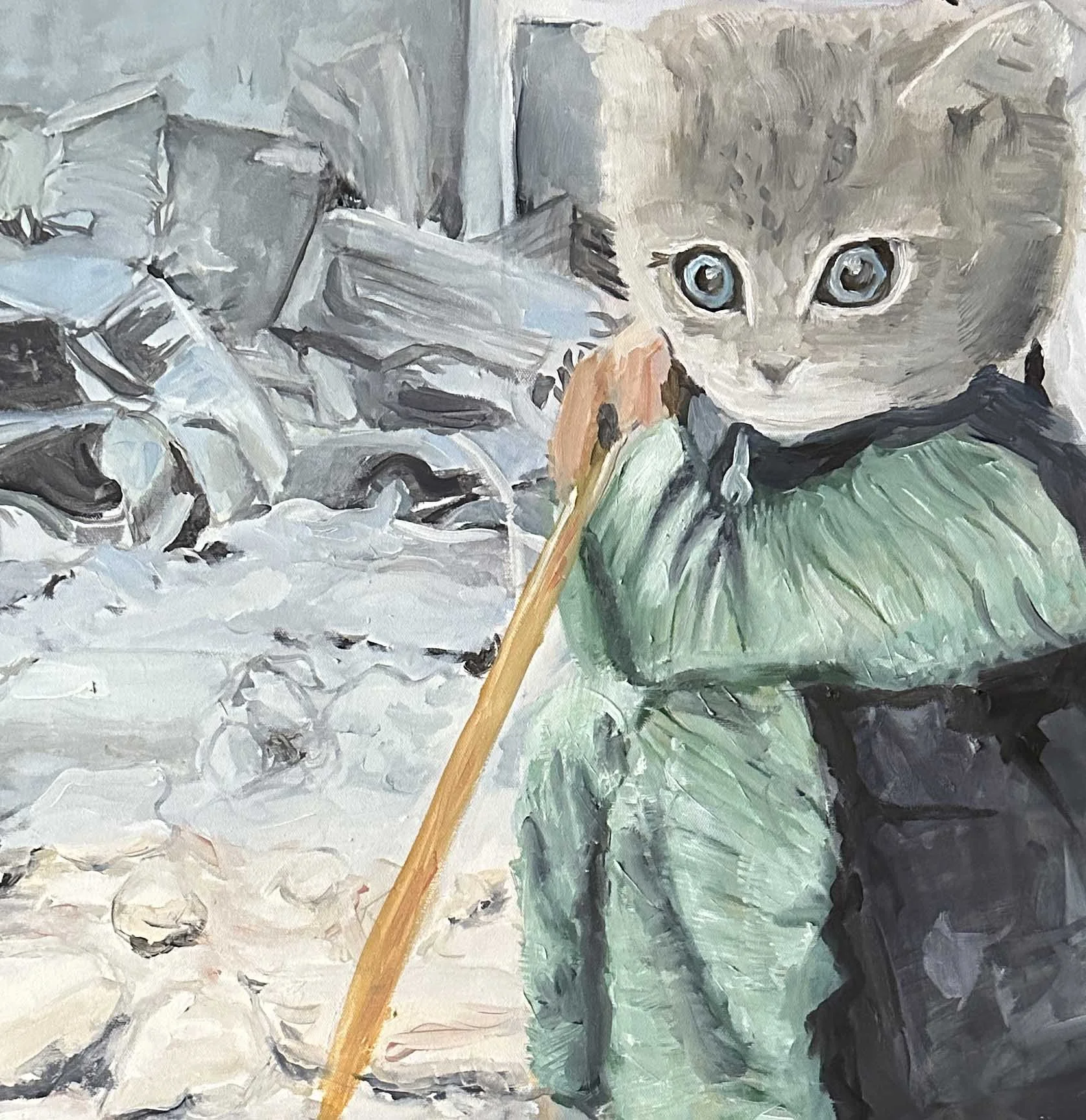 This was my first painting series at the School of the Art Institute of Chicago. Depicting the delayed reactions of commercial messaging when viewed in sequence of war footage, alienating the viewer from the true horror of the costs of war.
